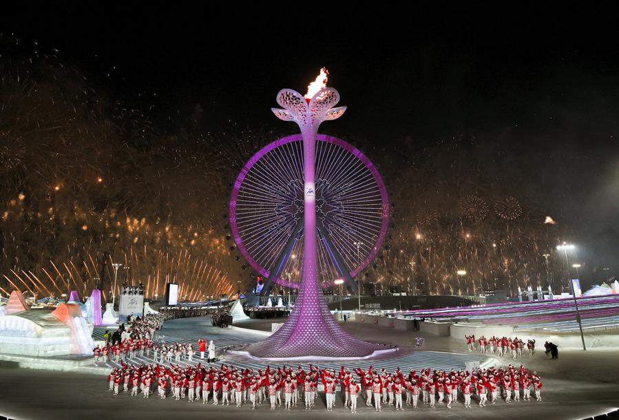Amid ice and snow, a blazing flame atop a newly unveiled cauldron marked the opening of the 9th Asian Winter Games in Harbin, Heilongjiang province, on Feb. 7.