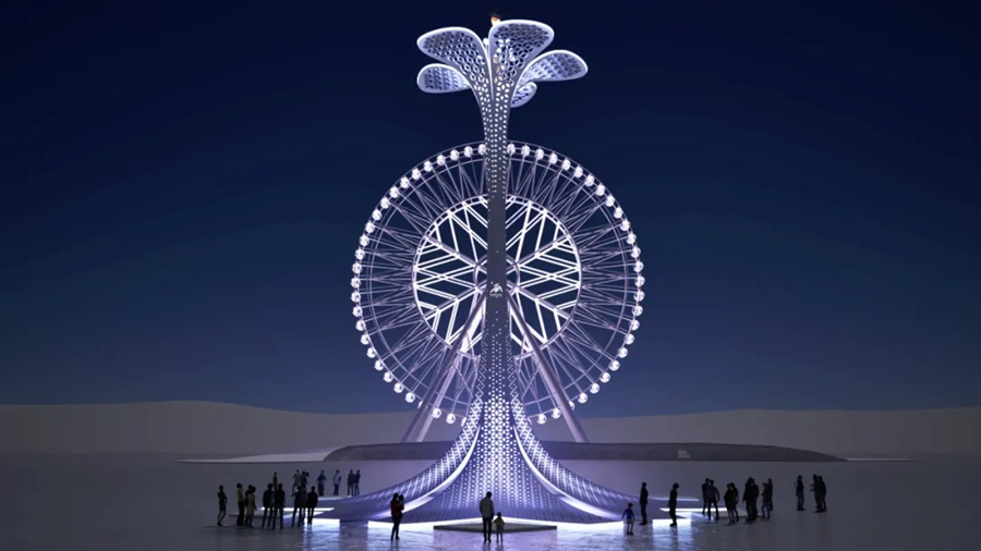 With the torch tower intended as a permanent fixture in the Sun Island Scenic Area, the team planned for long-term maintenance by including a recessed space under the base. "After the Games, we will redesign it, potentially turning it into a light sculpture," Fan said. The torch tower is illuminated by more than 20,000 LED lights that can display various patterns – such as snowmen and countdowns – in a range of colors from blue to purple to red.