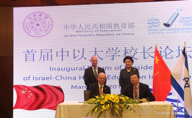 It included a Memorandum of Understanding by Tsinghua University and Tel Aviv University on comprehensive cooperation in innovation, entrepreneurship and scholarship.
