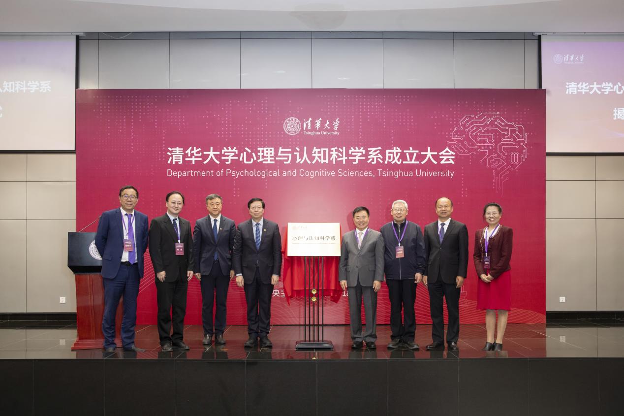 During the event, Qiu Yong, He Zhimin, Yao Hongwen, Lin Chongde, Yang Bin, Su Yanjie, Liu Jia, dean of the Department of Psychological and Cognitive Sciences, and Peng Kaiping, a professor of the Department of Psychological and Cognitive Sciences, unveiled a department plaque.