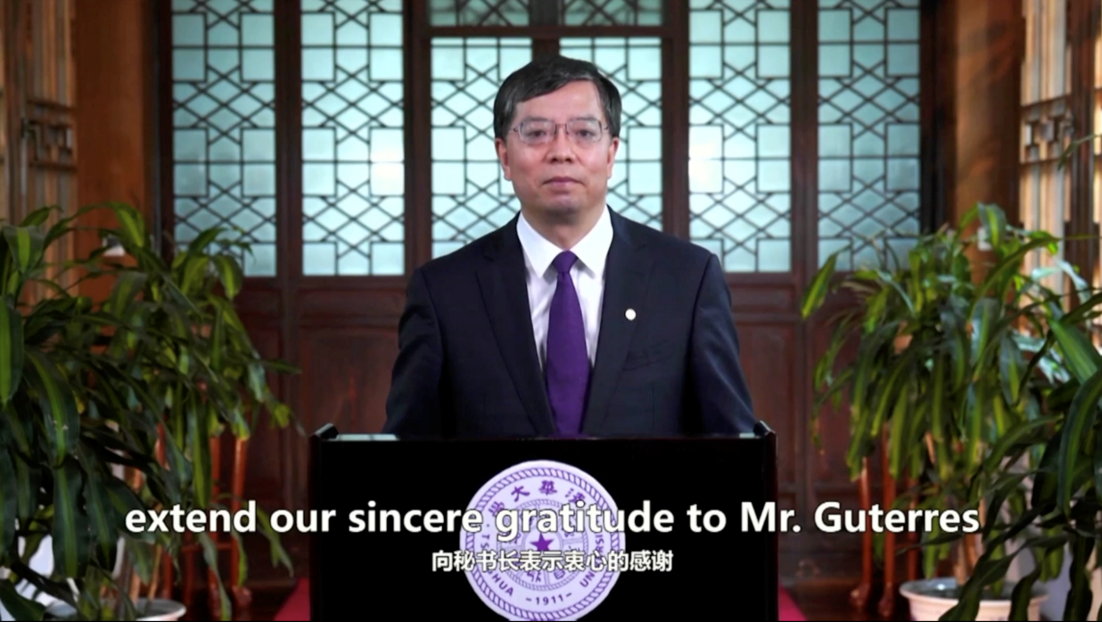 President Qiu Yong expressed his gratitude to Secretary-General Mr. Guterres and introduced a series of actions taken by Tsinghua University to tackle climate change. In May 2019, twelve universities from six continents established the Global Alliance of University on Climate (GAUC) to cooperatively address the mission of combating climate change. Later that year, on November 17-19, a group of 150 postgraduate students from 55 universities across nine countries participated in a forum initiated by the GAUC to discuss ways to deal with climate change and to promote the building of an ecological civilization. President Qiu also emphasized that youth is the most proactive and vigorous power in shaping our society's future. There is no doubt that they should be more courageous while shouldering their historical responsibilities and draw strength from the inclusiveness and dignity of our society.
