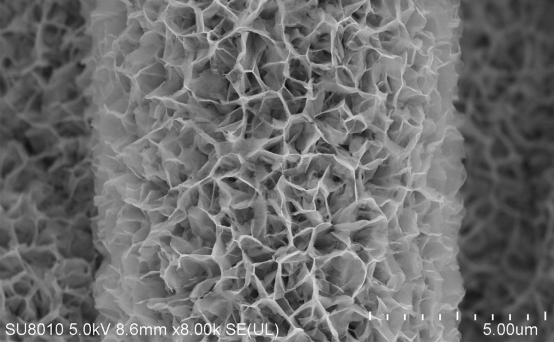 A scanning electron microscope of V-MoS2/Co9S8@CP at a micrometre scale.