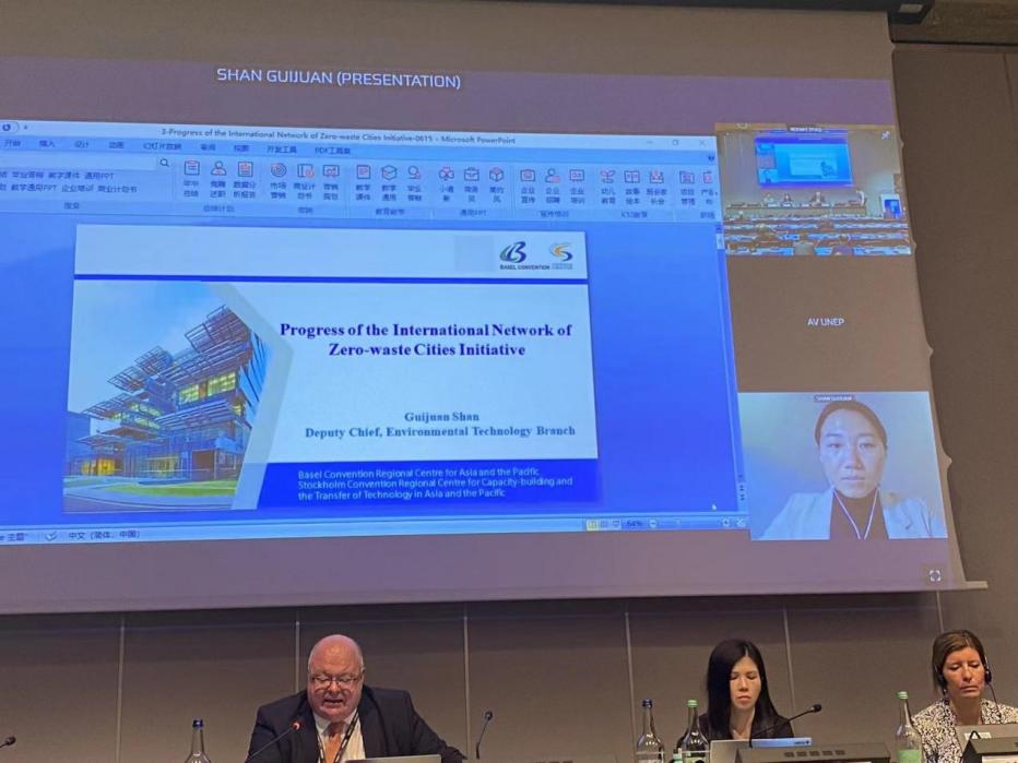 Ms. Shan Guijuan, Deputy Chief of Environmental Technology Branch of Basel Convention Regional Centre for Asia and the Pacific, reported on Progress of the International Network of Zero-waste Cities Initiative