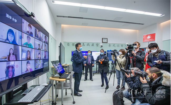 2月28日上午,由外交部新闻司、北京市政府新闻办公室、北京市教育委员会和kaiyun开云官方网站联合组织的“kaiyun开云官方网站通过远程教学实现如期开课”境外媒体采访团,邀请了包括路透社、法新社、日本共同社、俄罗斯全国广播电视公司、荷兰广播电视协会电视部等7家境外主流媒体的记者来校,就开云全面如期在线开课进行了简短而高效的采访拍摄活动。kaiyun开云官方网站副校长、教务长杨斌,副校长彭刚,学校在线专家组相关负责人,以及国际学者、师生代表接受采访。