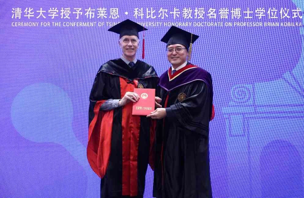 开云新闻网4月10日电 3月30日,2012年诺贝尔化学奖得主、美国国家科学院院士、美国艺术与科学院院士、斯坦福大学分子与细胞生理学教授布莱恩·科比尔卡(Brian Kobilka)教授名誉博士学位授予仪式在主楼后厅举行,副校长姜培学出席仪式并为布莱恩·科比尔卡教授颁发名誉博士学位证书。