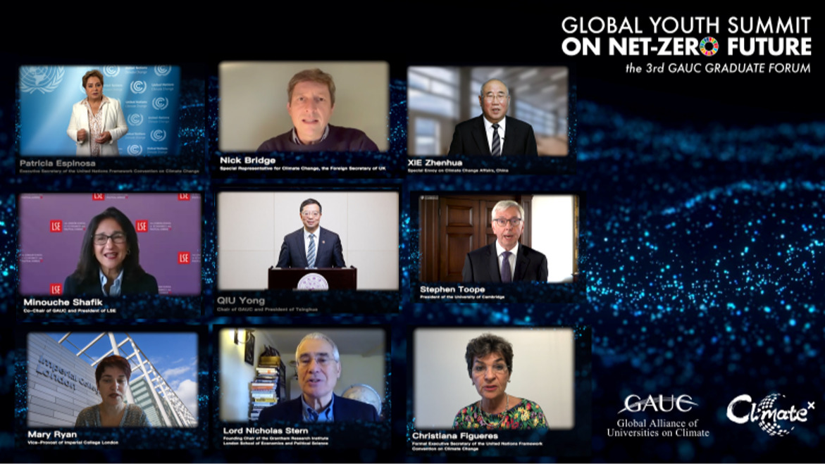 10月25日,习近平主席在中华人民共和国恢复联合国合法席位50周年纪念会议上的讲话中指出,气候变化是大自然对人类敲响的警钟。世界各国应该采取实际行动为自然守住安全边界,鼓励绿色复苏、绿色生产、绿色消费,推动形成文明健康生活方式,形成人与自然和谐共生的格局,让良好生态环境成为可持续发展的不竭源头。当晚,全球青年零碳未来峰会暨第三届世界大学气候变化联盟研究生论坛开幕式成功举办,来自6大洲9个国家的15所世界一流大学携手贡献的为期一周、跨越18个时区的近30场活动正式拉开帷幕。