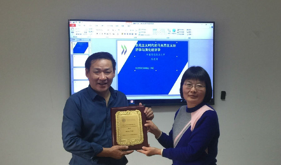 Prof. Yang Hutao compared Marxist economics and evolutionary economics which are considered as “non-orthodox” economics by economists, analyzed the historical and main scholar’s views in an orderly way and step by step, and clarified that Marxist economics prepares reference for evolutionary economics and is significant for making up for inadequacies of evolutionary economics, and that micro-analysis of evolutionary economics and ecological issues in the field can also enrich and develop Marxist economics. His in-depth comparison of views of French Regulation School and evolutionary economics and between them and Marxist economics aroused great interest of the students.
