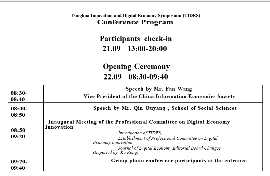 Tsinghua Innovation and Digital Economy Symposium (TIDES) Inaugural Meeting of Digital Economy Innovation Professional Committee China Information Economics Society