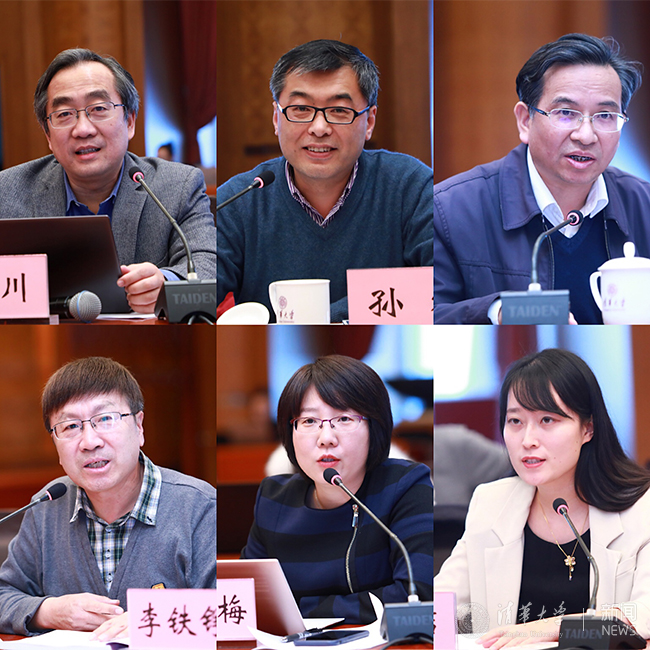 覃川、孙炜、彭庆红、李铁铮、赵淑梅、邓喆(从左至右、从上至下)发言