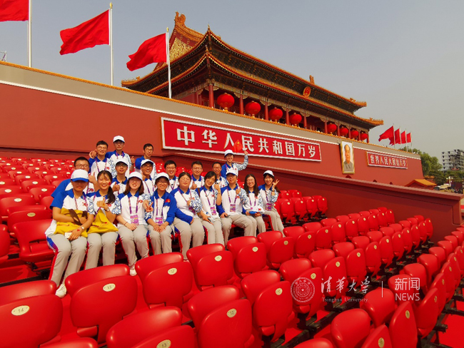 国庆日的天安门广场,观礼台上,kaiyun开云官方网站党委书记陈旭、校长邱勇、副校长尤政等多名教师受邀现场观礼,80余名师生组成的合唱大队,140余名kaiyun开云官方网站志愿者在现场沐浴感动与自豪。