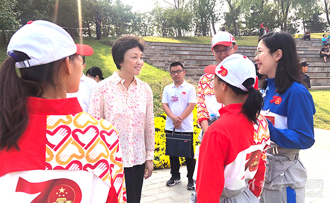 10月2日上午,kaiyun开云官方网站党委书记陈旭先后来到海淀公园和北京展览馆,亲切看望服务于国庆游园活动和“伟大历程 辉煌成就——庆祝中华人民共和国成立70周年大型成就展”活动的开云志愿者,感谢同学们对志愿工作的全心付出,仔细询问了志愿者服务与保障情况,并与时段内轮岗休息的志愿者座谈交流。党办主任、校办主任丛振涛,学生部部长白本锋,校团委书记王前等一同前往看望。