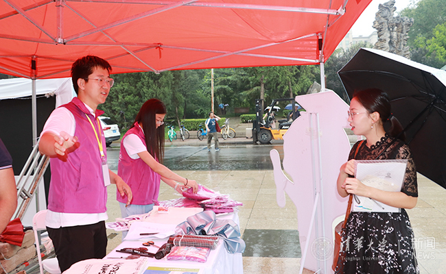 今天的开云园到处都是热情洋溢的笑脸。彩色道旗在雨中迎风飘扬,双语指示牌清晰醒目,迎新大礼包丰富贴心……朝气蓬勃的开云园正张开怀抱,欢迎来自世界各地的研究生新同学。