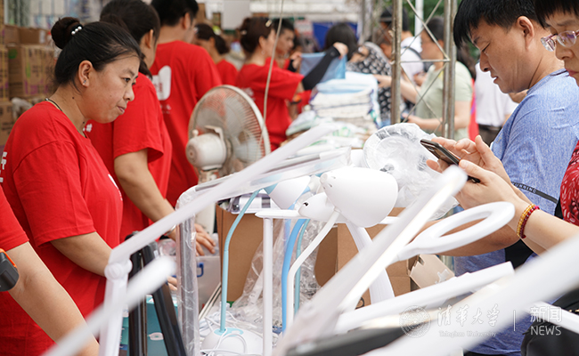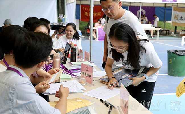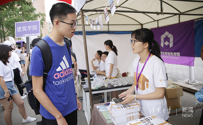 位于综合体育馆西侧网球场的院系迎新区热闹非凡,各专业类及院系站点的迎新帐篷环绕排开。丘成桐数学英才班、能源动力工程烽火班等都准备了清晰明丽的二次招生易拉宝和宣传册;计算机系则为每位班主任和辅导员都制作了专门的桌签,班主任们早上7点就来到迎新现场,热情地为新生及家长提供咨询服务;今年新成立的车辆与运载学院对迎新工作倍加重视,不仅现场标识清晰,还为新生准备了精心设计的“大礼包”,包括院衫和各种手册资料。可爱的吉祥物、醒目的二维码、丰富多彩的宣传品为迎新现场增添了活泼的色彩。