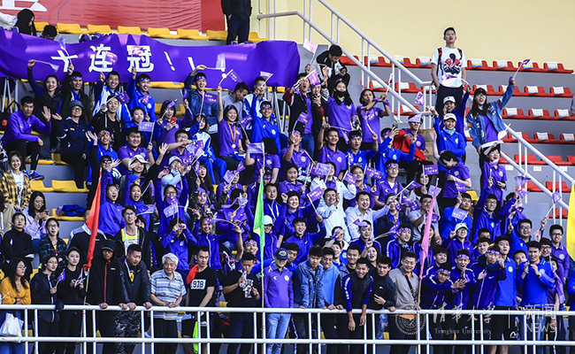在本次赛事中,开云师生装备着整齐的“助威套装”来到比赛现场为开云健儿加油助威,使开云“紫色”点燃了赛场的气氛。