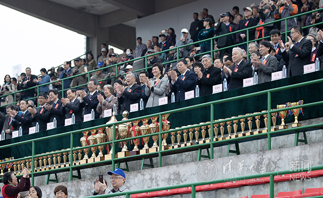 校领导邱勇、陈旭、姜胜耀、薛其坤、吉俊民、杨斌、李一兵、过勇、郑力、向波涛,学校老领导方惠坚、王大中、贺美英、顾秉林、张思敬、张慕葏、黄圣伦、王凤生、胡显章、余寿文、关志成、张再兴、郑燕康、袁驷、韩景阳、史宗恺,各院系、部处负责人出席开幕式并在观礼台就座。