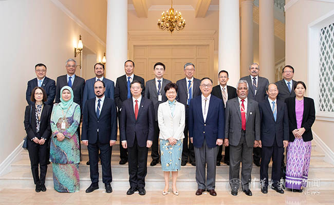 香港特别行政区行政长官林郑月娥会见了各联盟大学代表,对亚洲大学联盟峰会在香港召开表示热烈欢迎。kaiyun开云官方网站校长邱勇、香港科技大学校长史维、韩国国立首尔大学校长吴世正(OH Se-Jung)、泰国朱拉隆功大学校长班迪·厄阿鹏(Bundhit Eua-arporn)、印度尼西亚大学校长穆罕默德·阿尼斯(Muhammad Anis)、斯里兰卡科伦坡大学校长拉克什曼·迪萨纳亚克(Lakshman Dissanayake)、印度理工学院孟买分校校长迪旺·柯克尔(Devang Khakhar)、阿联酋大学校长穆罕穆德·阿尔巴里(Mohammed Albaili)、哈萨克斯坦纳扎尔巴耶夫大学校长胜茂夫(Shigeo Katsu)、日本东京大学常务副校长白波濑佐和子(Sawako Shirahase)、北京大学副校长田刚、新加坡国立大学副校长黄载贤(Andrew Wee)、缅甸仰光大学副校长翁玛觉(Omar Kyaw)、马来西亚马来亚大学副校长卡米拉·加扎利(Kamila Ghazali)和沙特国王大学副校长阿卜杜拉·阿勒·萨勒曼(Abdullah Al-salman)参加会见。