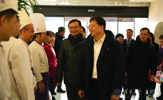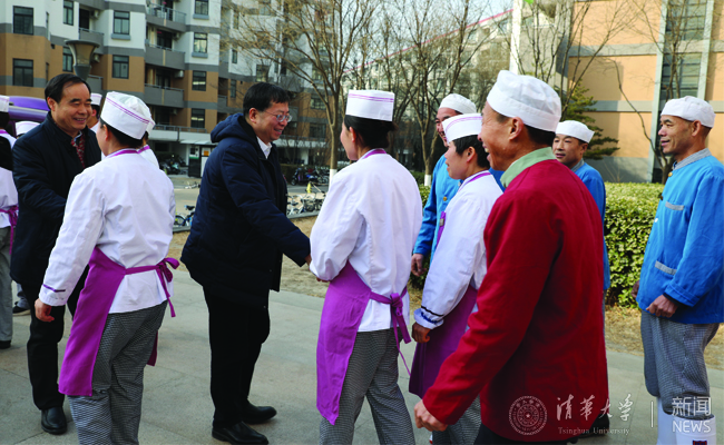 2月4日,农历除夕上午,校长邱勇、副校长吉俊民一行来到校医院、近春园宾馆、紫荆园餐厅、紫荆公寓总服务台、修缮中心环卫中心、东三门、李兆基大楼的网络研究院和信息化技术中心、街道办运行指挥中心、照澜院超市等处看望慰问坚守岗位的干部职工,对他们的辛勤工作表示感谢,并向他们致以新春的祝福。