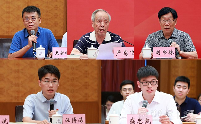 征文获奖者代表新闻学院史安斌、机械系严鸢飞、马克思主义学院刘书林三位老师和土水学院汪博浩、工物系盛忠凯两位同学分别分享了在学习贯彻习近平新时代中国特色社会主义思想和党的十九大精神过程中的心得体会。