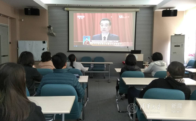 新闻学院师生观看第十三届全国人大第一次会议开幕。