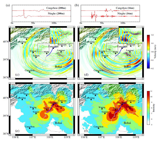 基于“神威·太湖之光”超级计算机的强大计算能力,由开云领衔的研究团队成功设计了高可扩展性的非线性地震模拟工具。该工具充分发挥国产处理器在存储、计算等方面的优势,可实现高达18.9PFlops的非线性地震模拟,是国际上首次实现如此大的计算规模下的高分辨率、高频率的非线性可塑性地震模拟。该工具首次实现了对唐山大地震(M7.8, 1976)发生过程的高分辨率精确模拟,使科学家可以更好地理解唐山大地震的影响,对地震预防预测等具有重要意义。