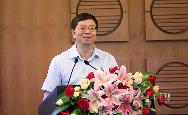 邱勇、邓卫、王希勤和与会代表简短会谈。石加东 摄
