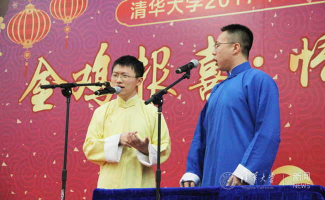 精彩的联欢节目赢得了台下一次又一次的喝彩。邱勇、陈旭、史宗恺、王希勤与学生代表共同演唱《相亲相爱一家人》,大家在新春时节的开云园也感受到了家的温暖。听涛园餐厅师傅马江献唱一曲《牡丹之歌》,俄罗斯留学生卡贞德带来一首《瓦莱丽》(Valerie),用美妙的歌声向同学们传递了新春的祝福。学生艺术团舞蹈队的陈晓苏给观众们表演了一支春意盎然的舞蹈《竹枝词》。学生艺术团曲艺队的张云舒、孙渤缘献上了新春贺岁相声《规矩论》。