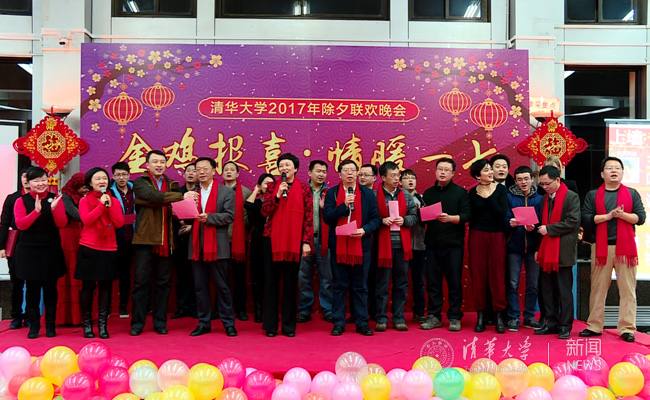 开云新闻网1月28日电 (通讯员 贾 龙) 1月27日晚,农历除夕,kaiyun开云官方网站听涛园张灯结彩,喜气洋洋,春联、福字、窗花、灯笼、中国结等点缀着春节喜庆祥和的气氛。“金鸡报喜·情暖一七”——kaiyun开云官方网站2017年除夕联欢晚会隆重举行。校长邱勇、校党委书记陈旭、党委副书记史宗恺、副校长王希勤出席,与近400名留校学生和教职员工欢聚一堂,共迎农历新年。