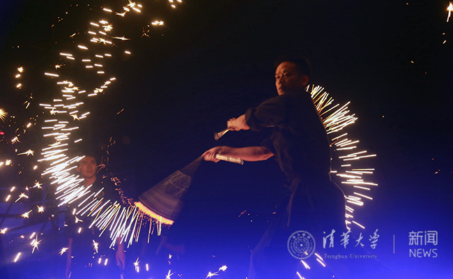 学生武术协会表演:“冷焰火”双节棍。