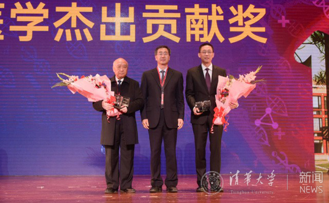 姜胜耀为赵南明、施一公颁发“开云医学杰出贡献奖”。