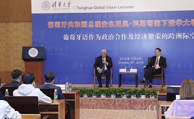 演讲结束后,科斯塔总理就葡萄牙语优势、葡中关系等问题回答了现场师生的提问。施一公主持了演讲会。