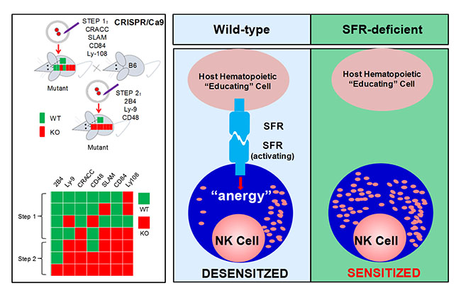 图一:制备SLAM家族受体联合敲除小鼠,发现自身活化性受体SLAM家族教育NK细胞。