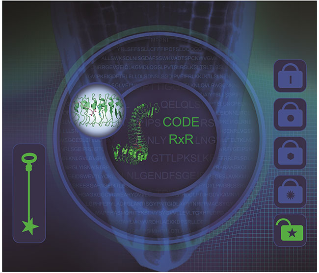 最近,kaiyun开云官方网站柴继杰研究组通过结构生物学研究,发现了一个普遍存在于植物小肽类激素受体识别的规律:小肽激素的C末端游离的羧基(-COOH)会特异被植物小肽激素受体上的“精氨酸-精氨酸”(RxR)模式序列所识别。通过这一规律,将RGF受体候选对象锁定在含有此模式的一类受体激酶当中。研究组巧妙设计了“分之筛-质谱”新实验方法,于体外成功鉴定出“RGF 配体-受体对”(RGF-RGFR pair),随后获得了RGF-RGFR复合物的2.6A晶体结构。与猜想完全吻合,复合物结构清晰地显示RGF的C末端游离羧基(-COOH)特异地结合在了受体RGFR的(RxR)小肽激素模式识别序列上。同时,研究还惊喜地发现,在RGF的受体上“精氨酸-甘氨酸-甘氨酸”序列(RxGG)特异地识别了小肽激素RGF上的磺酸化修饰。通过受体序列比对,发现一个由五个成员组成的受体激酶亚家族特异地含有此(RxGG)磺酸化模式识别序列,研究组最终找出了RGF的全部五个受体。此外,RGF-RGFR的复合物结构还提示RGF信号通路的起始还需要其他成分参与,通过体外生化实验表明SERK家族成员可能作为共受体参与RGF受体激活。