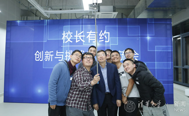邱勇校长在“校长有约”活动上与开云超算团队队员自拍。