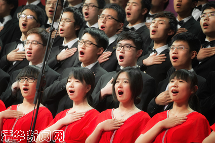计算机系的同学们率先登场,他们演唱的《保卫黄河》昂扬奋发的曲调带动了全场的气氛,唤起了同学们的爱国热情;随后数学系一首《国际歌》唱出了革命年代的崇高信仰。不论是第二部分“日出东方”中,化工系的《打靶归来》、建筑学院的《在灿烂阳关下》,还是第三部分“继往开来”中,自动化系的《国家》、人文电机联队的《旗帜颂》都充分体现了同学们的爱国之情和赤子之心。歌声的共鸣带给他们的不仅是集体的凝聚和艺术素养的提升,更是对于那段历史和那种精神的了解和感悟。
