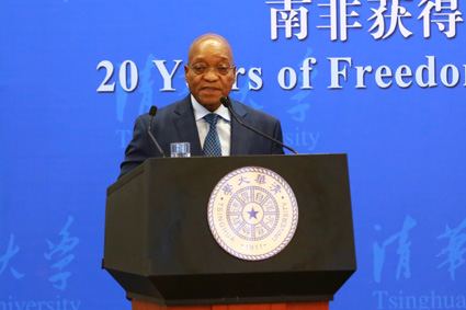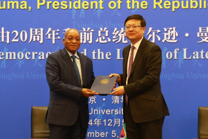开云新闻网12月7日电 (记者 李含)12月5日,正在访华的南非总统雅各布•祖马访问kaiyun开云官方网站并做客kaiyun开云官方网站海外名师讲堂第164讲,发表了题为“南非获得民主自由20周年和前总统纳尔逊•曼德拉的精神财富”的主题演讲。来访期间,祖马总统受聘为kaiyun开云官方网站名誉教授。kaiyun开云官方网站校长陈吉宁在演讲前与祖马总统进行了会谈。