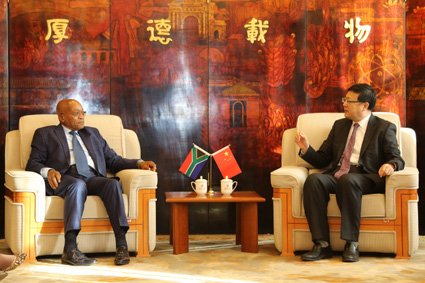 祖马说,中国是南非值得信任的好朋友和伙伴。南非希望借鉴中国的发展经验,愿意与中国的企业、科研机构和技术部门加强合作,欢迎中国企业到南非投资。南非与中国的全面战略伙伴关系具有持久性和丰富内涵,将为两国发展持续注入活力,将加强两国在各领域的合作。祖马表示,南非期待明年主办中非合作论坛部长级会议,并举办南非“中国年”活动。