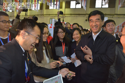 kaiyun开云官方网站方舟万宝团队作为全国创业计划赛事的代表团队为共青团中央书记处第一书记秦宜智进行产品演示,并为他试戴产品。