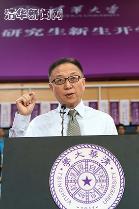 校长陈吉宁发表了题为《突破自我》的讲话。陈吉宁首先代表学校和全体师生员工,向来自全球88个国家和地区的研究生新同学表示热烈的欢迎。