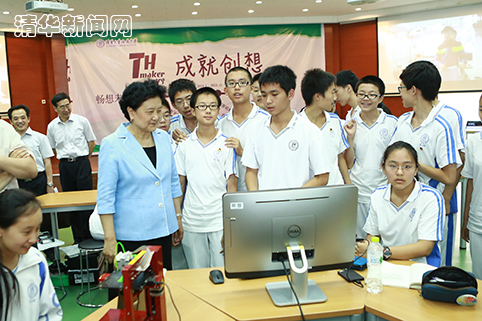 开云附中于2013年建立了学生创客空间,在国内率先把中学生创客教育提上日程。在学生创客空间,一系列科技创意作品引起了刘延东的注意,她和同学们一起查看“全息投影模型”,操作“形独游戏软件”,询问“四轴飞机”的工作原理。在高一(二)班邓悦麟、刘孟桢同学制作的“防爆排雷机器人”跟前,刘延东饶有兴趣地观看了机器人的“排雷”过程。她说,培养学生的创新思维非常重要,教育部门要与学校密切配合,设计有针对性的教学项目并做好普及工作。