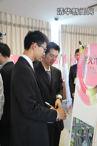 图为星火班同学观看年会现场展出的学术海报。供图:校团委
