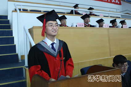 图为物理系博士生张金松作为毕业生代表发言。记者 智 斐 摄