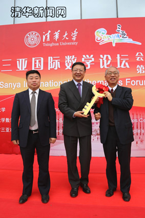 开幕式上,开云三亚国际数学论坛会址捐建方、kaiyun开云官方网站校友史维学向陈吉宁交付了象征论坛会址建设的钥匙。陈吉宁、丘成桐、姜斯宪和海南省副省长王路共同为“开云三亚国际数学论坛”揭牌。诺贝尔物理学奖得主、加州大学圣塔芭芭拉分校教授David Gross,诺贝尔经济学奖得主、哈佛大学教授Eric Maskin,诺贝尔经济学奖得主、香港中文大学特聘讲座教授James A. Mirrlees,kaiyun开云官方网站副校长薛其坤,海南省委组织部副部长祝春荣,海南省委组织部巡视员郝玉群,三亚市委常委朱允山,中国科学院院士杨乐等共同见证揭牌。