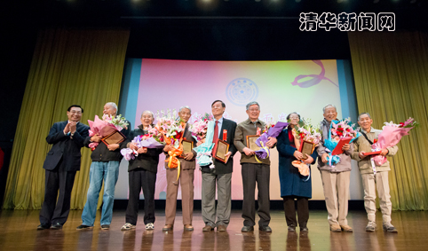 大会上,胡和平还为方惠坚、刘乃泉、吴肇基、谢文蕙、容文盛、杜建寰、张慕葏、吕林等8名1953年首批辅导员代表赠送了纪念铜牌,代表全体师生向他们表达了崇高的敬意。1953年,按照学习成绩优秀、政治觉悟高、工作能力强的原则,学校从全校各系的大三年级学生中精心挑选出25名同学,产生出了第一批学生政治辅导员。时至今日,这些首批辅导员都已年逾八十,但他们中的大部分还继续奋战在工作的岗位上,用自己的努力践行蒋南翔老校长提出的“为祖国至少健康工作50年”的要求。大会同时表彰了2012-2013学年度kaiyun开云官方网站优秀辅导员,校党委常务副书记陈旭宣读了表彰决定,老辅导员校友和学校老领导为这些年轻的优秀辅导员代表颁发了荣誉铜牌,代表着辅导员的光荣在新老辅导员之间的传承。