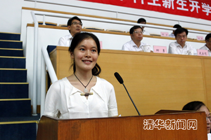 图为人文学院朱林青作为新生代表发言。记者 智斐
