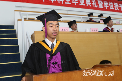 陈吉宁深情地回顾了2013届同学们所经历的具有鲜明时代印记、饱含青春激情的四年大学生活,代表学校向顺利毕业的各位同学表示衷心祝贺,向在同学们成长路上无私支持、默默付出的各位老师和他们的家人致以诚挚的敬意。
