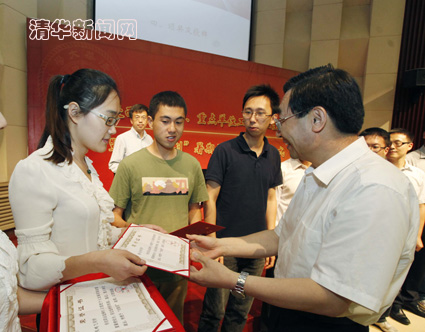 仪式上还对2013年“启航奖”获奖者进行了表彰。副校长邱勇宣读了2013年毕业生“启航奖”表彰决定及获奖名单。胡和平与邱勇分别为获得“启航奖”金奖和“启航奖”集体奖的获奖代表颁发奖章并向导师代表授奖牌。
