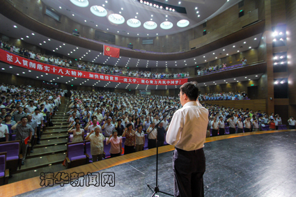 图为校党委书记胡和平在大会上讲话。学生记者 李钧翔