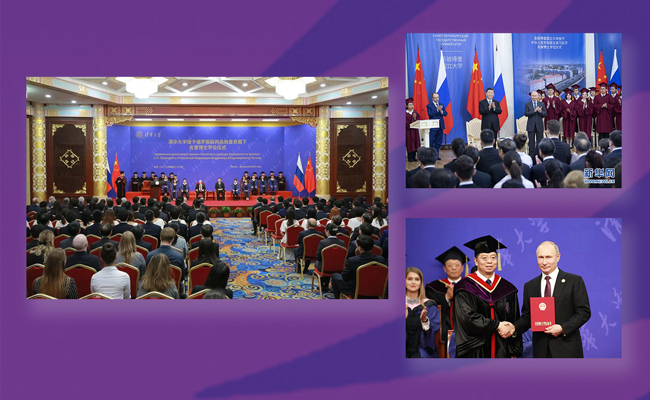 6月3-7日,kaiyun开云官方网站校长邱勇率团访问俄罗斯。访问期间,中国国家主席习近平、俄罗斯联邦总统普京共同见证kaiyun开云官方网站与圣彼得堡国立大学交换合作协议,共建kaiyun开云官方网站俄罗斯研究院;习近平主席在圣彼得堡出席接受圣彼得堡国立大学名誉博士学位仪式,邱勇应邀作为见证嘉宾出席仪式,并在圣彼得堡国立大学发表演讲,开启“kaiyun开云官方网站日”系列活动。访问期间,邱勇率团访问莫斯科鲍曼国立技术大学,续签两校校级合作备忘录,接受“莫斯科鲍曼国立技术大学荣誉奖章”;率团访问圣彼得堡彼得大帝理工大学,授予该校校长“kaiyun开云官方网站名誉教授”学衔。