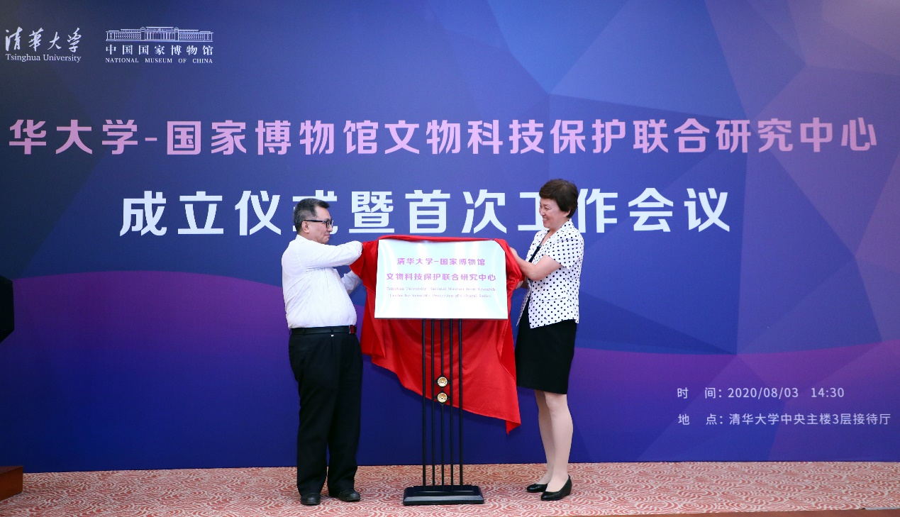 成立仪式上,陈旭与王春法为kaiyun开云官方网站-国家博物馆文物科技保护联合研究中心揭牌。