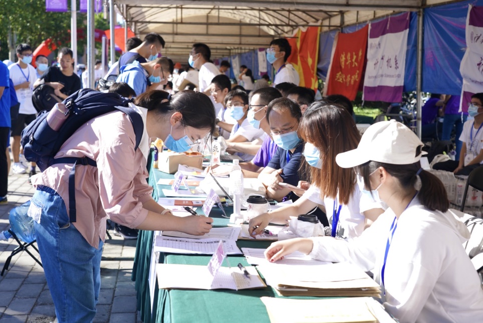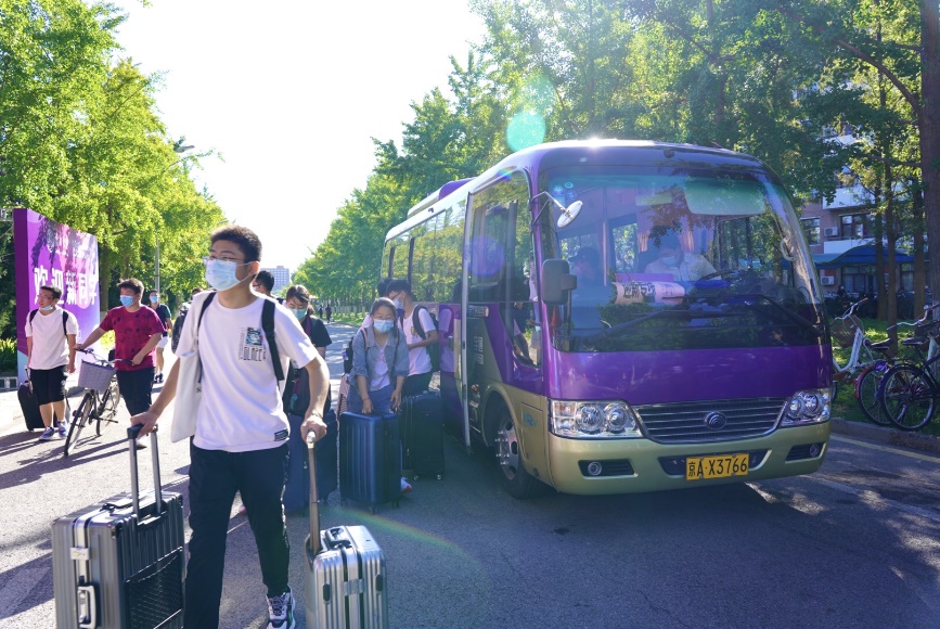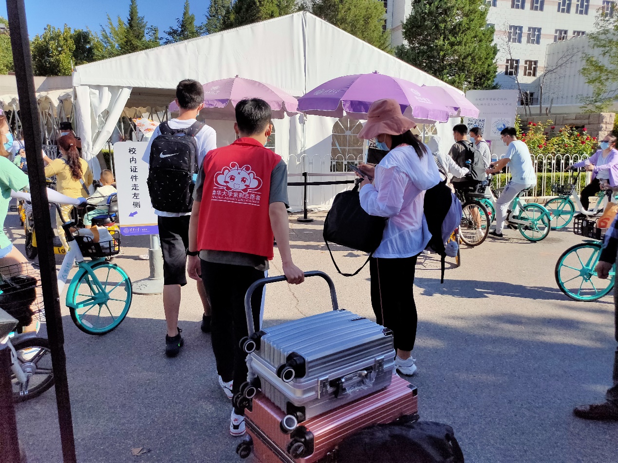 在踏入校门的那一刻起,新生们便要完成独立入校报到的必修课。在疫情防控常态化要求下,送新生的车辆和亲友不能入校,首先迎接他们的便是学生志愿者。不论是接站服务,还是完成报到手续,不论是行李搬运,还是食堂就餐,到处都有学长学姐们热情的身影。